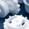 Es de color blanco, debido a sus grandes cualidades es aplicado a una gran variedad de procesos, destacándose en los que se solicitan altas temperaturas y soluciones altamente corrosivas. Al teflón se le puede agregar fibra de vidrio o grafito para mejorar su resistencia a la temperatura o molibdeno para optimizar su resistencia al desgaste.
